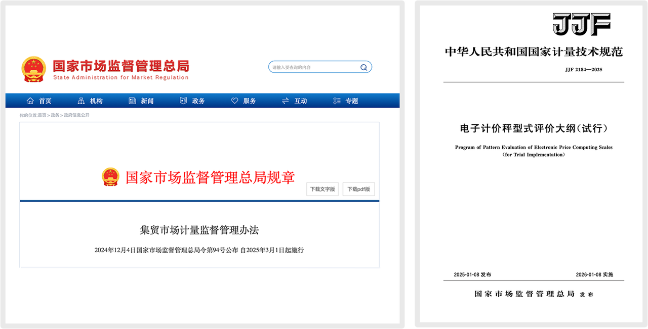 為應(yīng)對農(nóng)貿(mào)市場存在的計(jì)量作弊問題,國家市場監(jiān)督管理總局近期出臺了一系列強(qiáng)制性法規(guī)與技術(shù)規(guī)范,標(biāo)志著行業(yè)將進(jìn)入一個(gè)全新的、以技術(shù)防作弊為核心的合規(guī)時(shí)代。本文將解析《集貿(mào)市場計(jì)量監(jiān)督管理辦法》(總局令第94號)及《電子計(jì)價(jià)秤型式評價(jià)大綱(試行)》(JJF 2184-2025)的核心要求,這并非一次簡單的規(guī)則重申,而是電子計(jì)價(jià)秤產(chǎn)品本身發(fā)起的一場產(chǎn)業(yè)升級。通過設(shè)定技術(shù)要求與明確的法律時(shí)限,系統(tǒng)性地重塑產(chǎn)品的設(shè)計(jì)邏輯與生產(chǎn)標(biāo)準(zhǔn)。