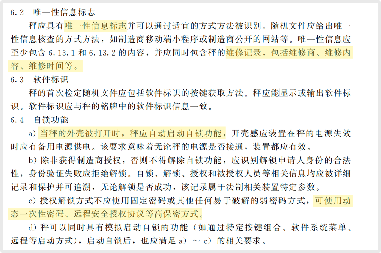 此項(xiàng)要求意味必須在硬件層面具備“非法開殼即觸發(fā)鎖死”的功能。任何試圖打開外殼以改裝的行為,都將導(dǎo)致設(shè)備無法使用,解鎖必須通過官方授權(quán)的動態(tài)密碼完成。這從物理根源上終結(jié)了“鬼秤”的制造途徑。